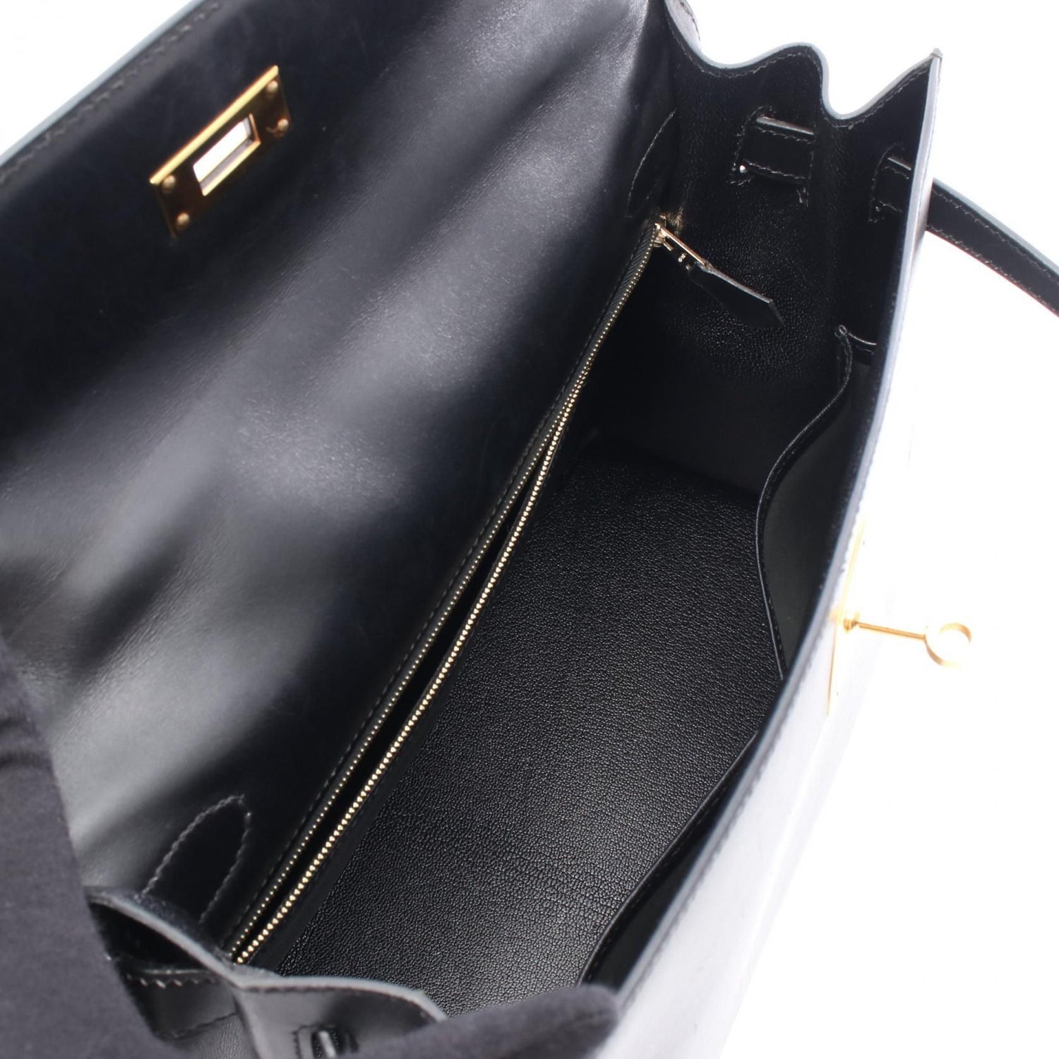 Item Name: HERMES Kelly 32 Handbag Noir Black Black Box calf leather Calfskin (cowhide)