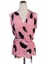 Moschino Excellent Pink Floral Silk Blouse Wrap Style Size S. This stylish blouse features a beautiful pink color with a striking black floral pattern, showcasing the perfect blend of elegance and contemporary fashion. The wrap style design includes a flattering V-neck and a tie belt at the waist, enhancing your silhouette and adding a touch of sophistication to your outfit. Condition: Excellent with no flaws, this blouse maintains its vibrant color and intricate detailing, making it a fantastic addition to your wardrobe. The size S ensures a perfect fit for a variety of body types. Crafted from high-quality silk, this blouse is not only visually appealing but also comfortable to wear. Ideal for both casual outings and semi-formal occasions, this versatile piece can be easily styled with jeans, skirts, or dress pants. Care instructions: Dry clean only to preserve the fabric's integrity and longevity. Additional details include: sleeveless design for enhanced comfort, a beautiful floral print that adds visual interest, and a flattering silhouette that's perfect for layering or wearing alone. This blouse is a must-have for those who appreciate luxury and style. Whether you're dressing up for an event or going for a casual day out, this Moschino blouse delivers elegance and function. Please message me to confirm shipping timeframe. My full-time job involves traveling often, and shipping out may take longer than usual. Thanks for your interest.