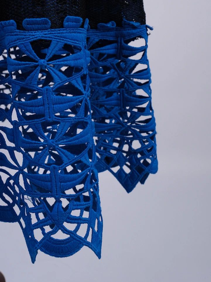 NEW Maje Blue Lace Dress XS Sleeveless Fitted Flared Skirt