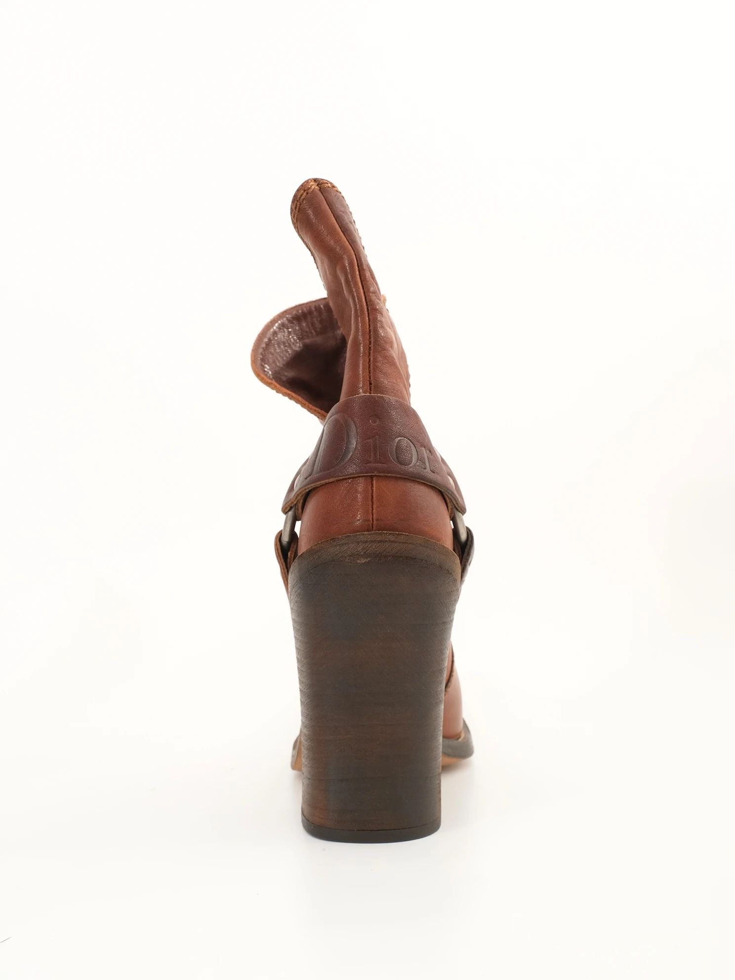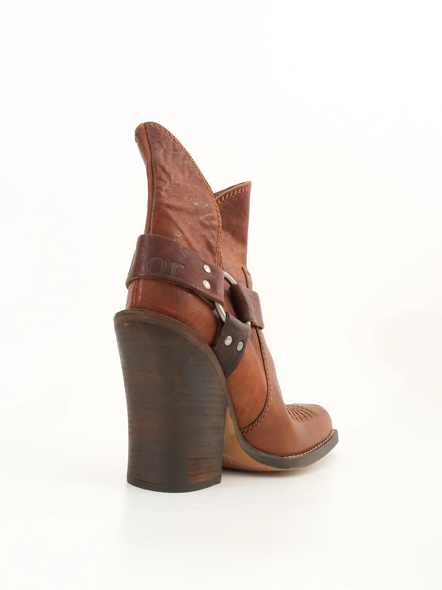 Perfect Dior Orange Leather High-Heeled Western Boots Size 39