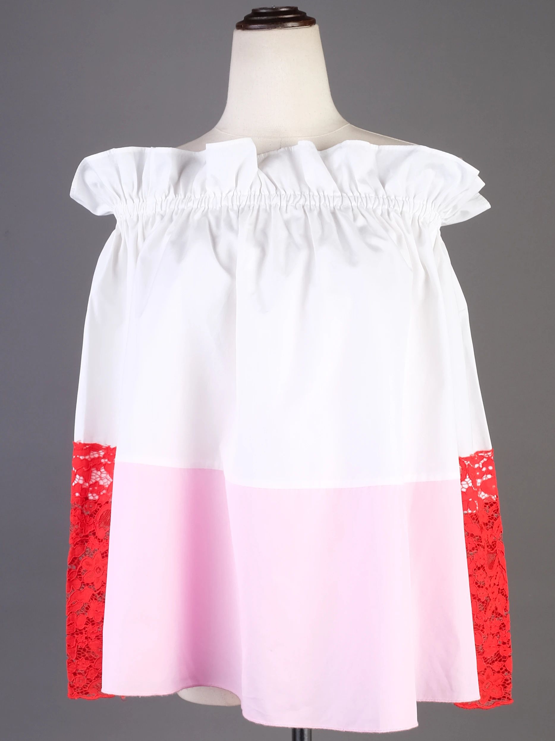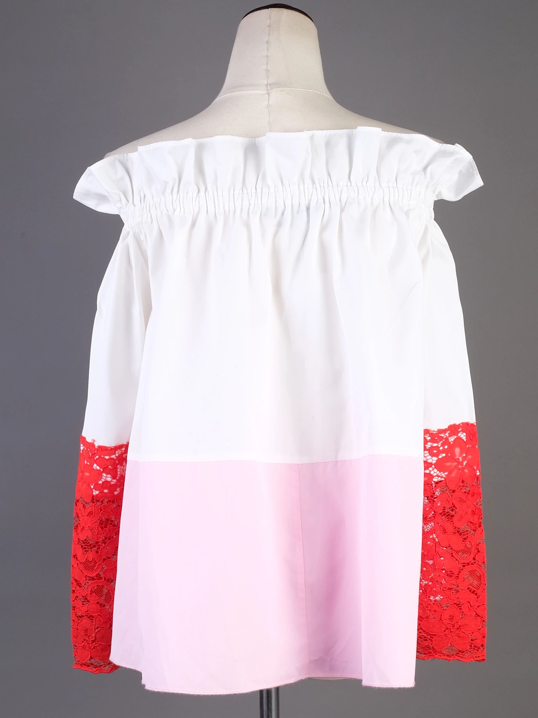 Sportmax Excellent Condition Off-the-Shoulder Top Size S Ruffled Neckline. This stunning top is in excellent condition with no visible flaws and fits true to size. The off-the-shoulder design showcases a flattering ruffled neckline, making it a perfect addition to your wardrobe. The top features a combination of white and pink as the main colors, beautifully complemented by striking red lace details at the bottom of the sleeves. Crafted from 100% natural cotton, this top is comfortable and breathable, ideal for any casual or semi-casual occasion. Care instructions: Hand wash only to maintain the quality of the fabric. Perfect for layering or wearing on its own, this Sportmax off-the-shoulder top will elevate your style with its unique design and vibrant colors. Don't miss the chance to add this elegant piece to your collection, whether for a day out or a special event. Condition: Excellent Size: S Brand: Sportmax Color: Combined (white, pink, red) Material: 100% Cotton Natural Note: This is a smoke-free and pet-free home. Please message me to confirm shipping timeframe. My full-time job involves traveling often, and shipping out may take longer than usual. Thanks for your interest.