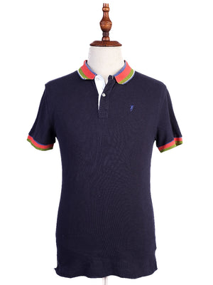 Trussardi Men's Blue Polo Shirt Excellent Condition Size N/A This impressive navy blue polo shirt from Trussardi is in excellent condition and features a contemporary design perfect for any casual occasion. The shirt showcases vibrant multicolored stripes on the collar and sleeve cuffs, adding an eye-catching detail to the classic polo style. A discreet emblem on the chest exemplifies the brand's quality craftsmanship. The shirt is crafted from high-quality polyester, ensuring comfort and durability for everyday wear. Although size information is not provided, it is designed for a men's fit. Ideal for any casual or semi-casual outing, this polo can easily be dressed up or down, making it a versatile addition to your wardrobe. Its remarkable color and stylish accents make it an excellent choice for layering or wearing on its own during warmer weather. Additional care should be taken to maintain its pristine appearance; machine wash only is recommended. This item comes from a smoke-free and pet-free home, ensuring it is in fantastic condition for its new owner. Please message me to confirm shipping timeframe. My full-time job involves traveling often, and shipping out may take longer than usual. Thanks for your interest.