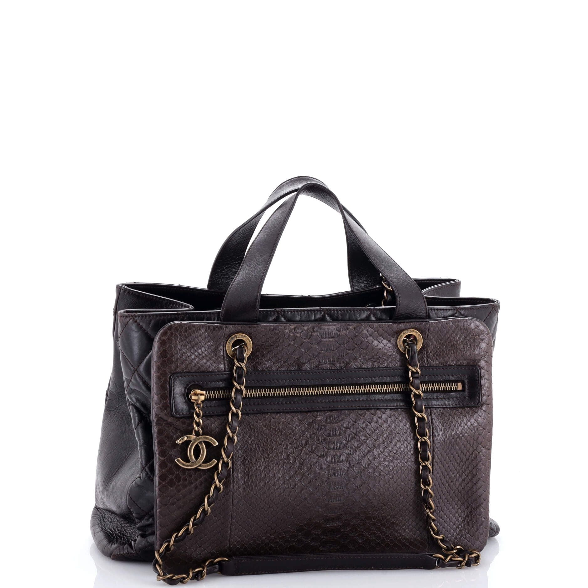 Chanel Urban Mix Tote Quilted Glazed Calfskin And Python Medium