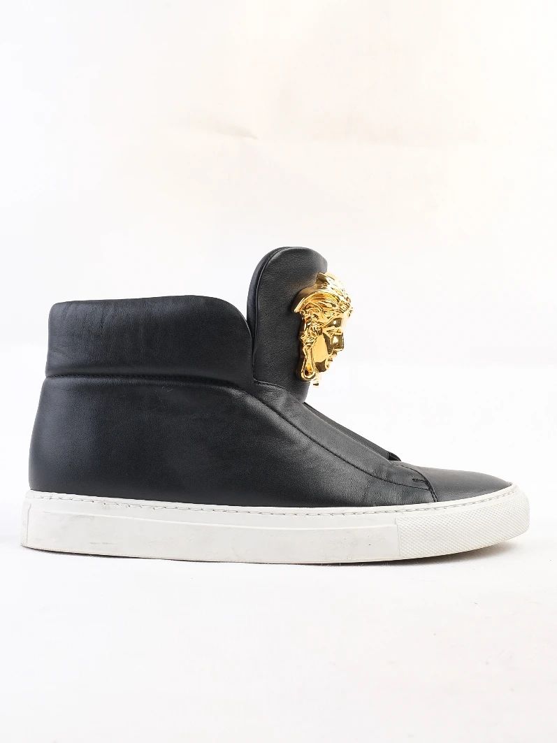 Versace WomenÕs Black Leather High-Top Sneakers Size 39 with Medusa