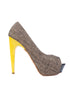 Vicini WomenÕs High-Heeled Peep-Toe Shoes Size 36 Excellent Condition. These exquisite shoes feature a unique combined color scheme, showcasing a textured brown upper contrasted with a glossy yellow heel. The chic peep-toe design adds a touch of elegance to your wardrobe, making them perfect for various occasions. The platform at the front is black, adding both style and comfort with a light brown sole. In excellent condition, these shoes show minimal signs of wear and fit true to size. Designed for women who appreciate both fashion and comfort, they are made of high-quality textile materials. The heel height offers a flattering lift, making them a versatile addition to any stylish ensemble. Care: Spot clean only to maintain their pristine appearance. These Vicini shoes are not just footwear; theyÕre a statement piece that will elevate any outfit. Perfect for cocktail events, evenings out, or even a casual outing, they blend seamlessly into any wardrobe. The combination of colors and materials set them apart, making them a must-have for fashion enthusiasts. Condition: Excellent with no visible flaws. Smoke-free, pet-free home. Please message me to confirm shipping timeframe. My full-time job involves traveling often, and shipping out may take longer than usual. Thanks for your interest.