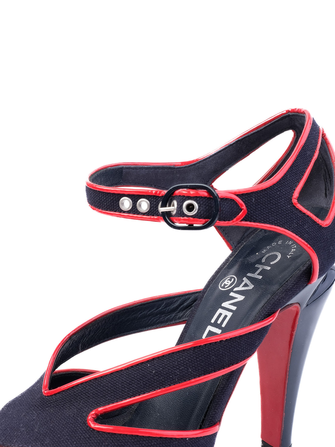 Excellent Chanel High-Heeled Shoes Red & Black Size 37.5- Regular price