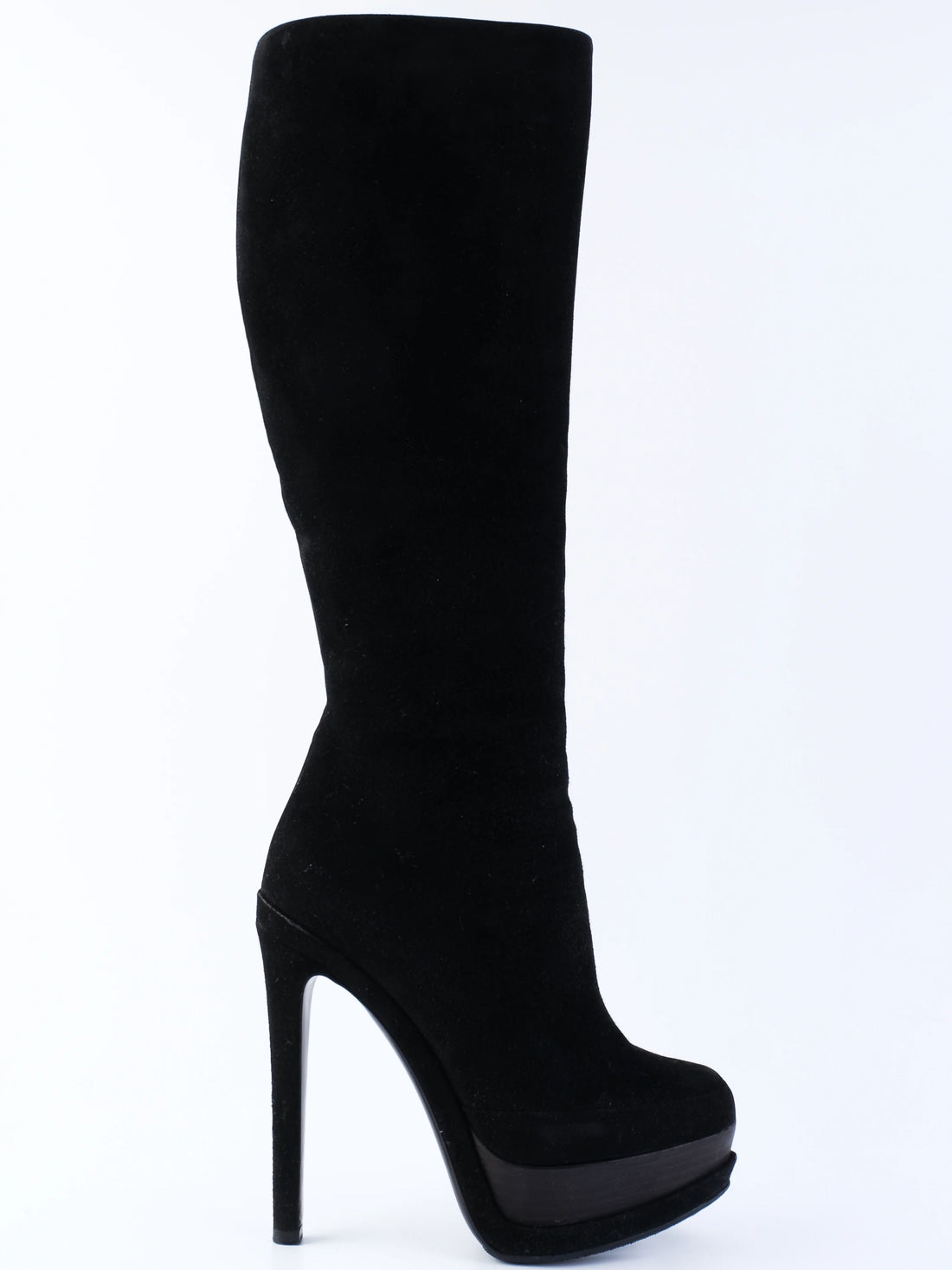 EXCELLENT Dior Black Leather High-Heeled Platform Knee-High Boots Size 37.5