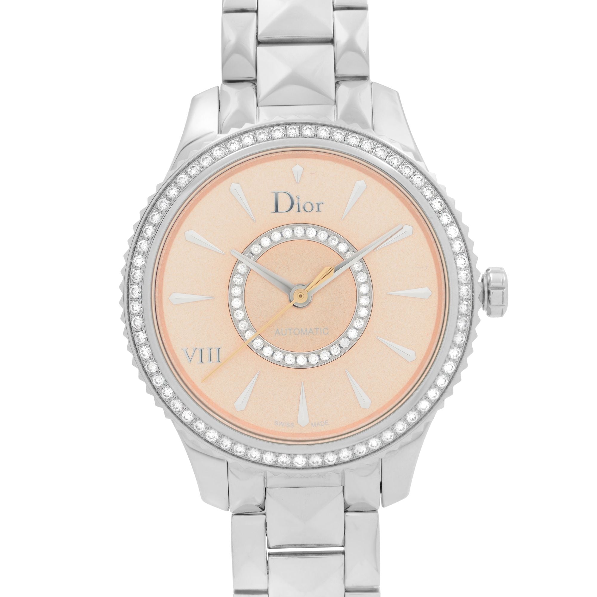 Christian Dior VIII Montaigne Steel Diamond Pink Dial Ladies Watch CD152510M002