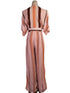 Average Condition Uterque Pink Striped Dress Size S V-Neck Wide Sleeves Elevate your wardrobe with this stylish Uterque dress, crafted from a comfortable viscose material. Featuring a vibrant mix of pink, orange, and brown stripes, this dress is perfect for making a bold statement. Designed with a flattering V-neckline and wide sleeves, it drapes beautifully, while the belted waist enhances your silhouette. The long, flowing pants provide a chic look that's suitable for various occasions, from casual outings to semi-formal gatherings. Condition is average with visible signs of wear, giving it a vintage charm. Size S ensures a comfortable fit for many body types. Care instructions recommend gentle handling; we suggest hand washing or dry cleaning to keep the fabric in great condition. This dress is an excellent option for fans of the Uterque brand, renowned for its quality and stylish designs. Don't miss the chance to own this unique piece that combines comfort and style effortlessly. Please message me to confirm shipping timeframe. My full-time job involves traveling often, and shipping out may take longer than usual. Thanks for your interest.