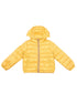 This stylish puffer jacket features a vibrant yellow color that is perfect for your little one. Made from durable polyester, it offers warmth and comfort during colder months. The jacket includes a hood for added protection against the elements, making it ideal for both outdoor play and casual outings.