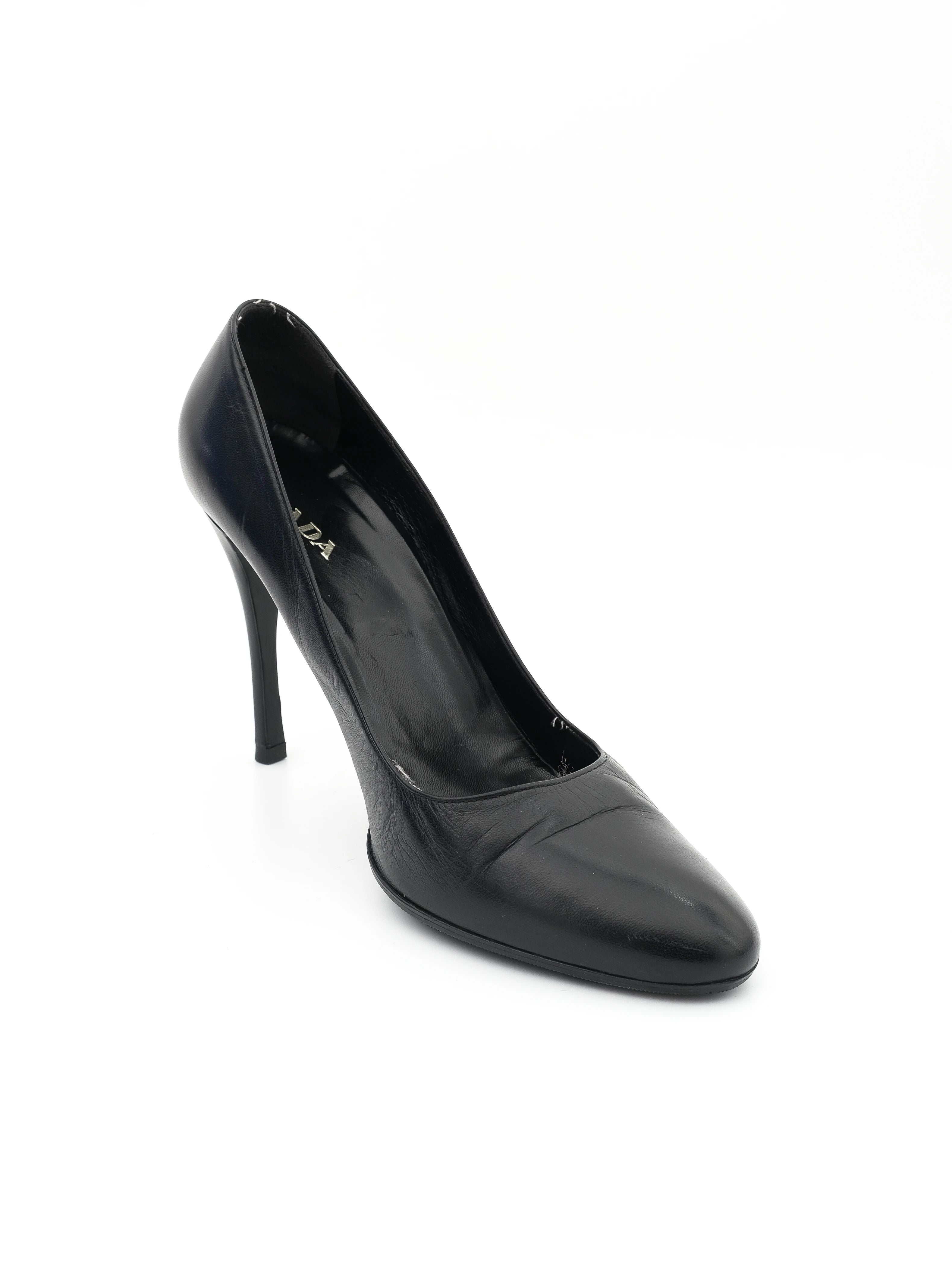 Average Prada Black Leather High-Heeled Pumps Size 40