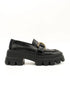Average Uterque Black Leather Platform Loafers with Buckle Size 39