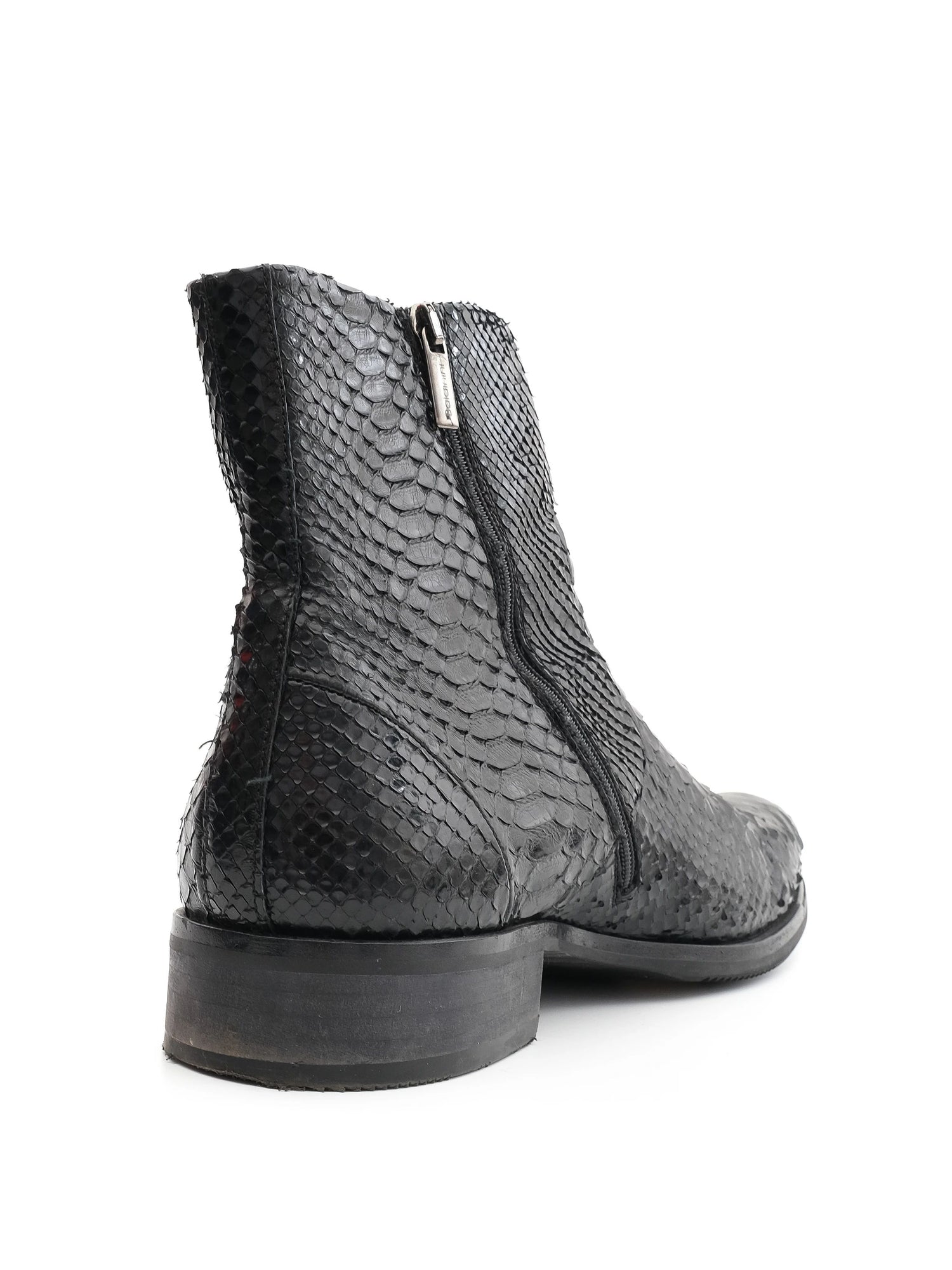 Baldinini Black Leather Snake Skin Boots Size 43 Excellent Condition. These stylish shoes are in excellent condition, showcasing a unique textured appearance that resembles reptile skin, ideal for adding a bold touch to any outfit. Crafted from genuine leather with a glossy finish, these boots feature a convenient side zipper for easy wear. The slight heel adds a sophisticated silhouette, making them perfect for both casual and semi-casual occasions. Size 43, these boots fit true to size and are suitable for men looking to elevate their footwear collection. Care instructions: Spot clean with a leather cleaner to maintain their look and longevity. Shaft Height: Approximately [insert shaft height if known], Heel Height: [insert heel height if known]. Additional details include the textured scaly design, lending a luxurious edge to your ensemble, perfect for stylish outings or even as a standout piece in your daily wardrobe. Experience the quality of Baldinini with these boots, synonymous with elegance and sophistication in menÕs fashion. Please message me to confirm shipping timeframe. My full-time job involves traveling often, and shipping out may take longer than usual. Thanks for your interest.
