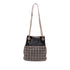 This Bucket bag features a mesh and calf leather body, leather woven chain link shoulder straps, and an open top.