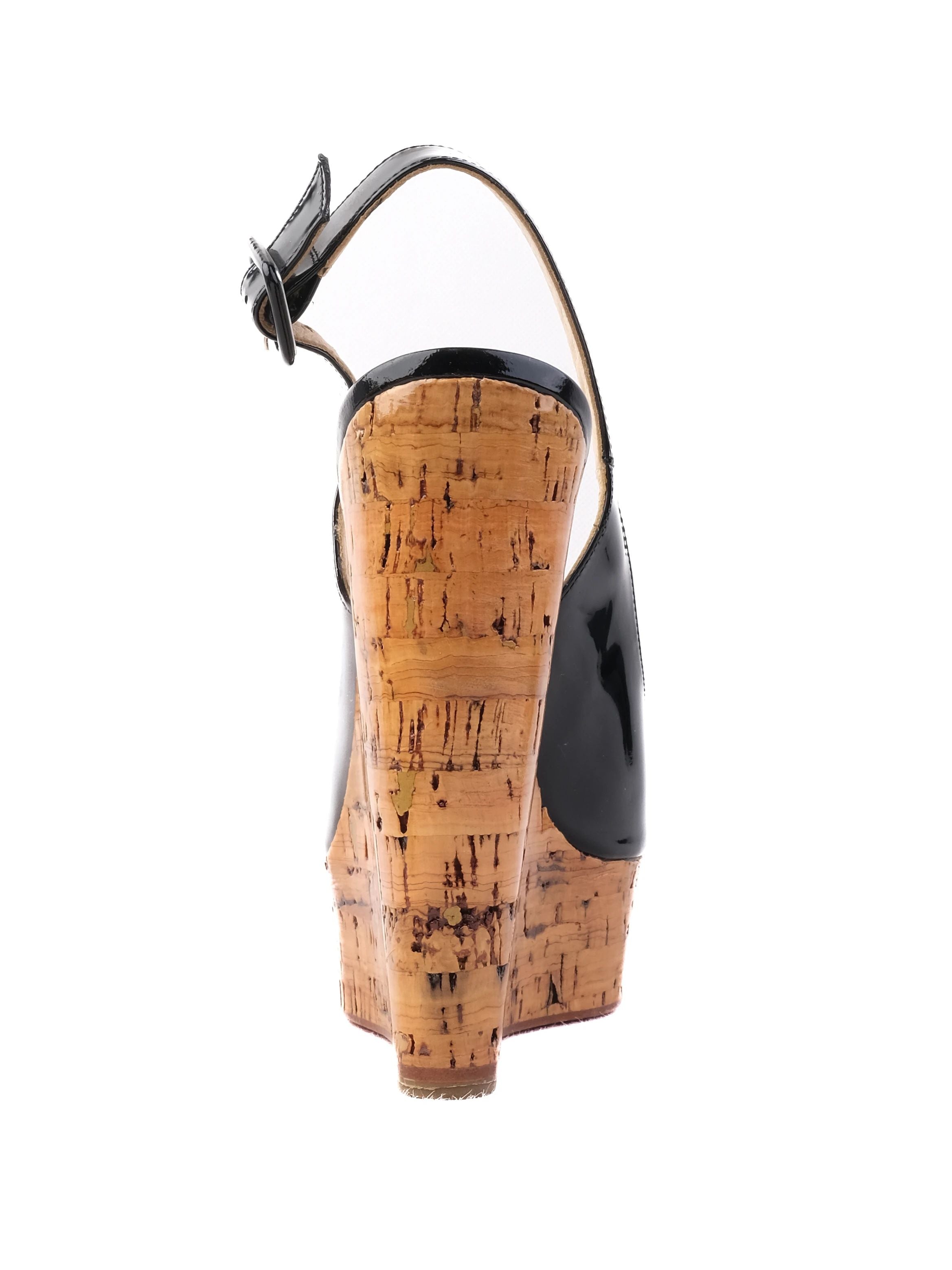 Christian Louboutin Black Leather Wedge Platform Shoes Size 35. Excellent condition with no flaws, these stunning wedge platform shoes feature a sleek black patent leather upper paired with an elegant ankle strap and buckle for added security and style. The unique cork platform and heel provide both comfort and a distinctive look, making these shoes perfect for various occasions, from casual outings to semi-casual events. Care instructions: Spot clean only to maintain the integrity of the leather and cork materials. These wedges combine high fashion and functionality, ensuring you stand out while feeling confident. Elevate your shoe collection with these iconic Christian Louboutin wedges, a must-have for any footwear aficionado. Please message me to confirm shipping timeframe. My full-time job involves traveling often, and shipping out may take longer than usual. Thanks for your interest.