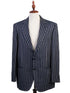 Excellent BRIONI Blue Silk Jacket with White Stripes Size XXL