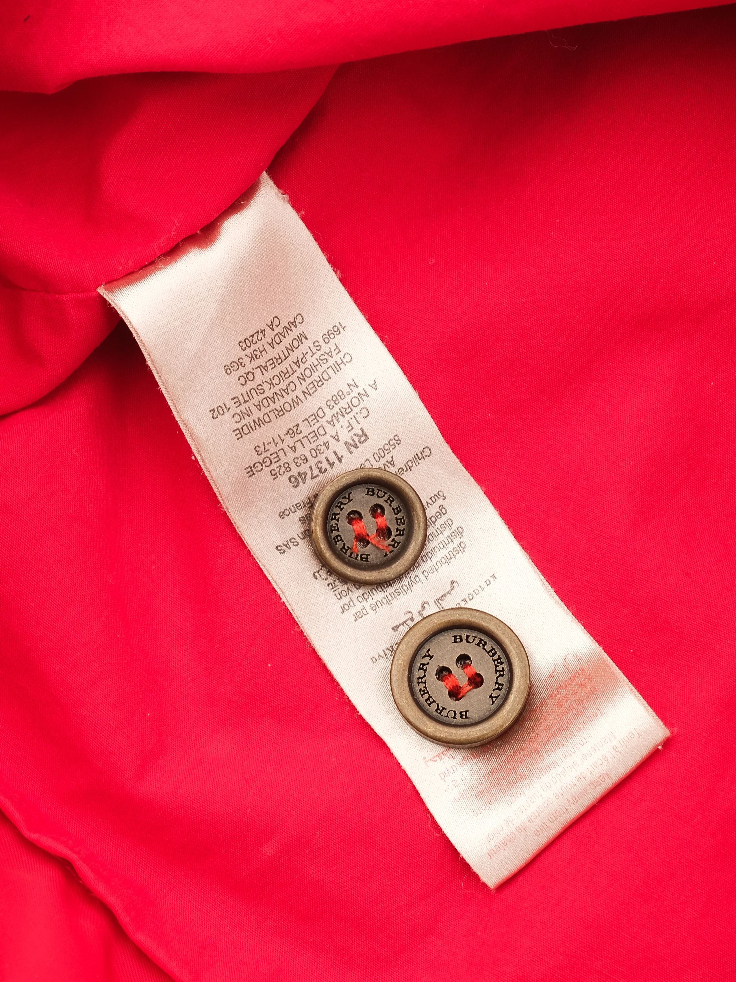 Excellent Burberry Red Hooded Jacket for Kids Size 8 Nylon. This stylish hooded jacket by Burberry is in excellent condition, showcasing no flaws and fitting true to size. Designed for kids, it features a vibrant red color that adds a pop of brightness to any outfit. Crafted from high-quality nylon, this jacket is not only durable but also lightweight and comfortable for all-day wear. The jacket includes a distinctive check pattern on the inside, a hallmark of the Burberry brand, showcasing its authenticity. The design includes a functional hood, a front zip closure, and features such as a black buckle and buttons that enhance both utility and style. The attention to detail is evident in the craftsmanship, ensuring this jacket is both stylish and practical for everyday use. Care instructions recommend dry cleaning to maintain its pristine condition. This jacket is perfect for casual outings, playdates, or layering during cooler weather, making it a versatile addition to any childÕs wardrobe. Rest assured, this piece comes from a smoke-free and pet-free home. Please message me to confirm shipping timeframe. My full-time job involves traveling often, and shipping out may take longer than usual. Thanks for your interest.