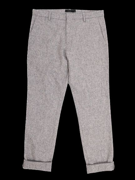 Crafted from quality wool, these trousers ensure comfort and breathability while providing a sleek look. The design includes a rolled-up hem at the bottom, giving them a trendy, refined edge, while belt loops at the waist allow for customization with your favorite belt.