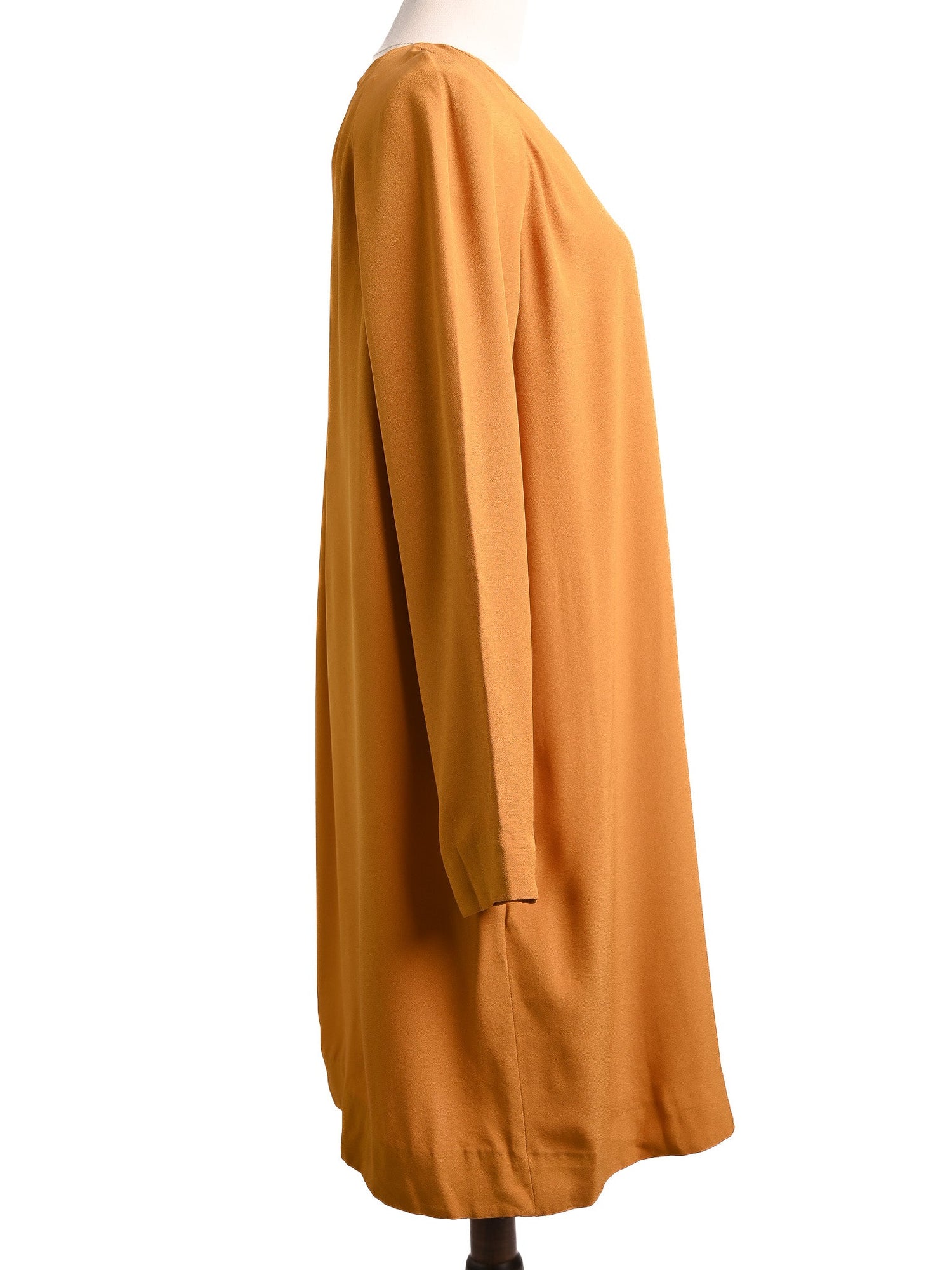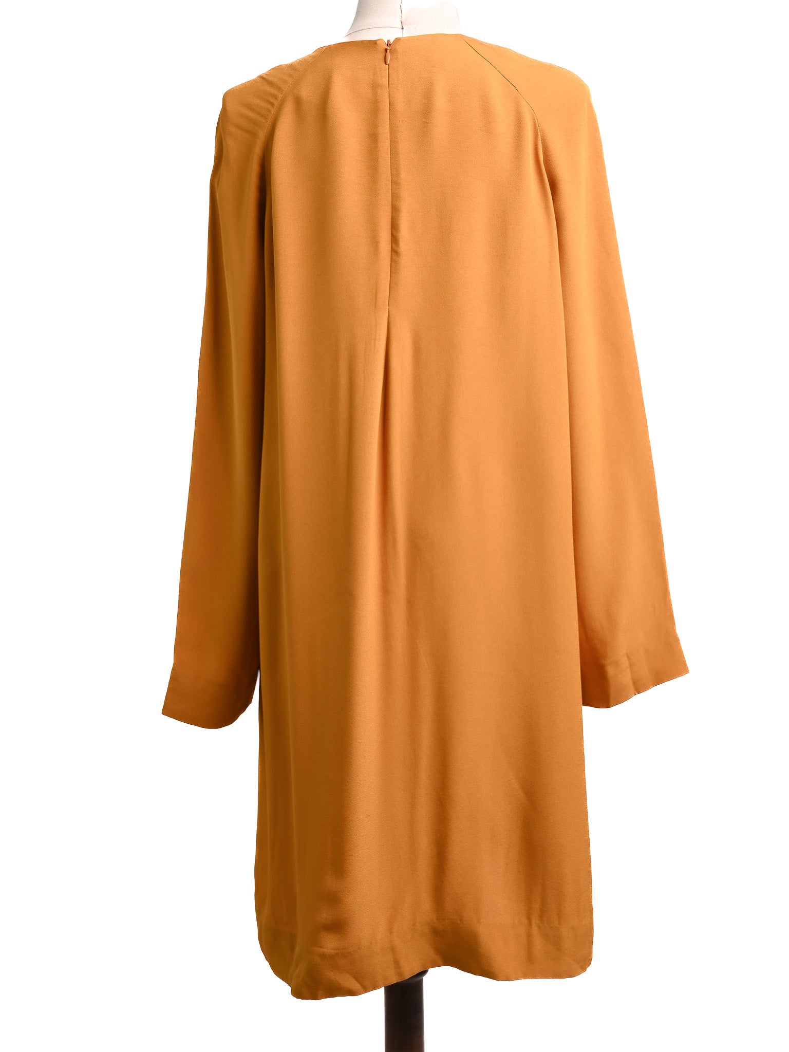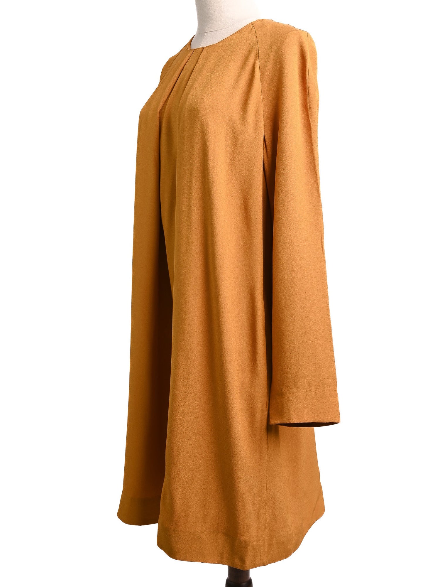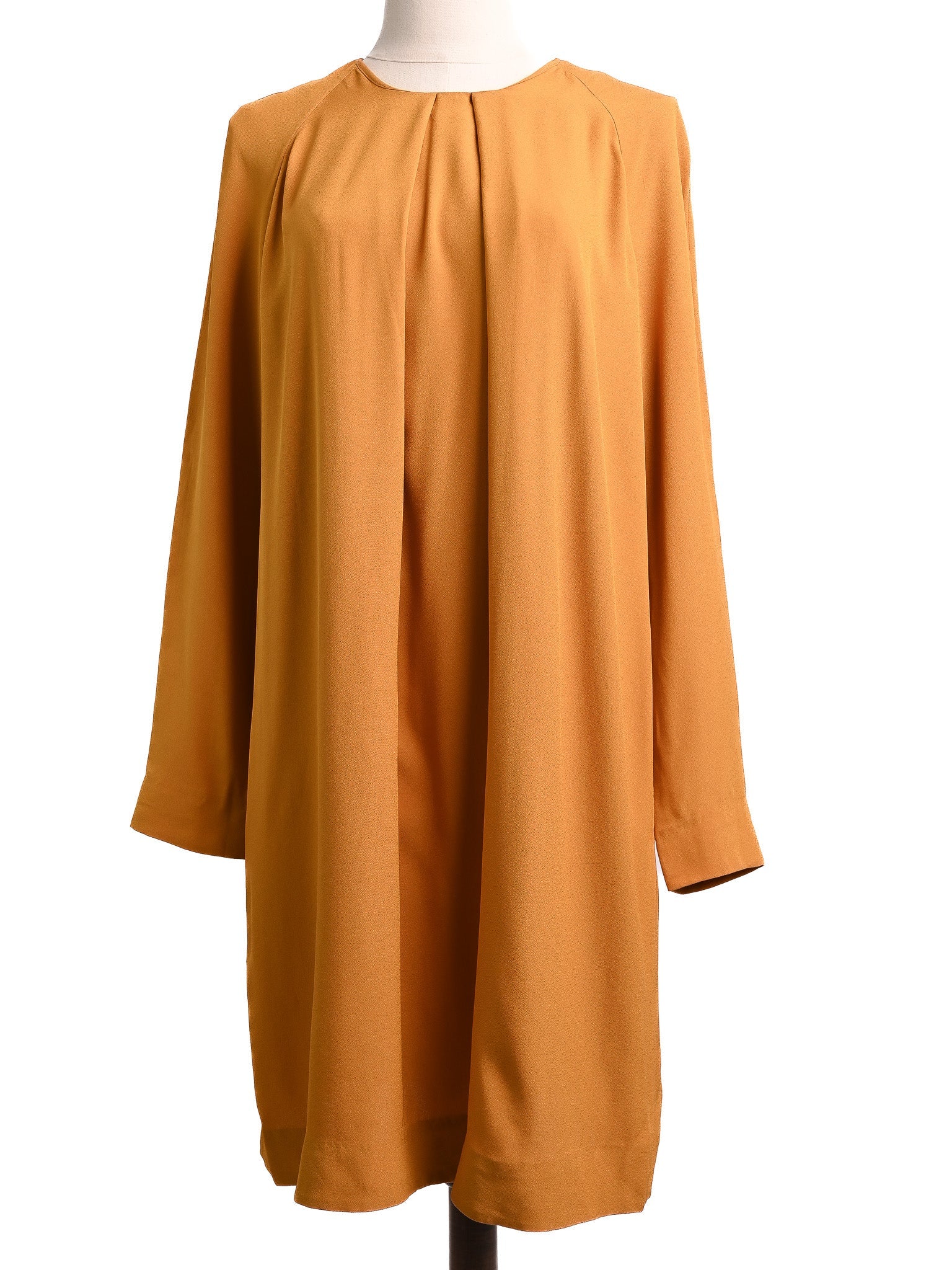 Excellent Cos Orange Viscose Dress Size M with Pleated Neckline