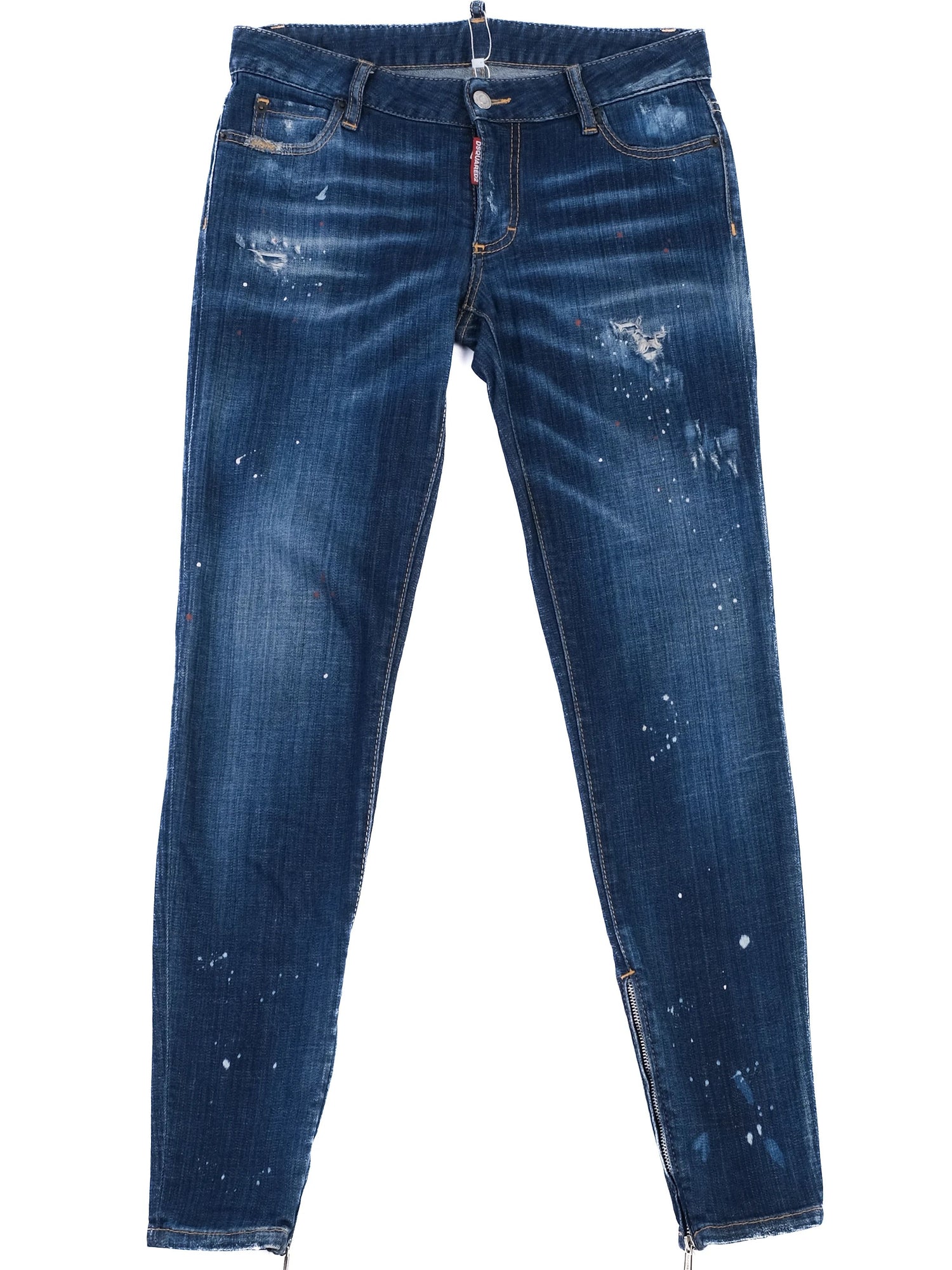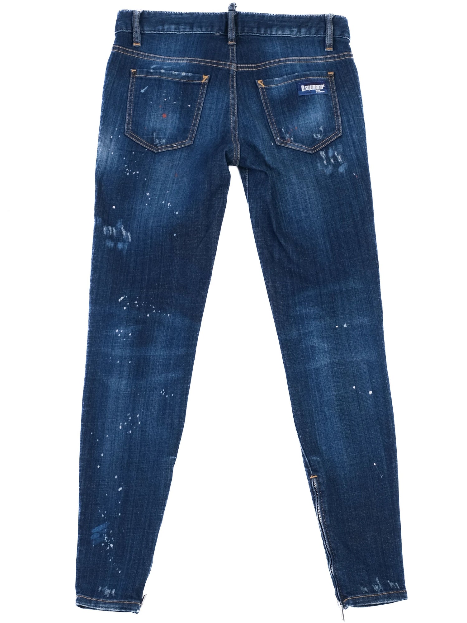 Excellent Dsquared2 Blue Distressed Denim Jeans Size M. These stylish jeans feature a unique distressed and paint-splattered design that is perfect for fashion-forward individuals. The size M jeans are made from natural cotton material, ensuring comfort and durability. The jeans have visible wear and tear details that add character, while the back pocket proudly displays the iconic "DSQUARED2" label. A close-up of the front button and waistband label highlights the craftsmanship of this high-end brand. Condition is excellent with no major flaws, ensuring you receive a top-quality product that fits true to size. Perfect for casual occasions, these jeans can be paired with a variety of tops for a trendy look. Care instructions: Machine wash only. Details: Distressed design, paint splatters, back pocket label, and classic jeans styling. This item comes from a smoke-free and pet-free home. Please message me to confirm shipping timeframe. My full-time job involves traveling often, and shipping out may take longer than usual. Thanks for your interest.