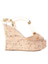 Excellent Fabi White Leather Cork Wedge Sandals Size 38 with Gold Accents