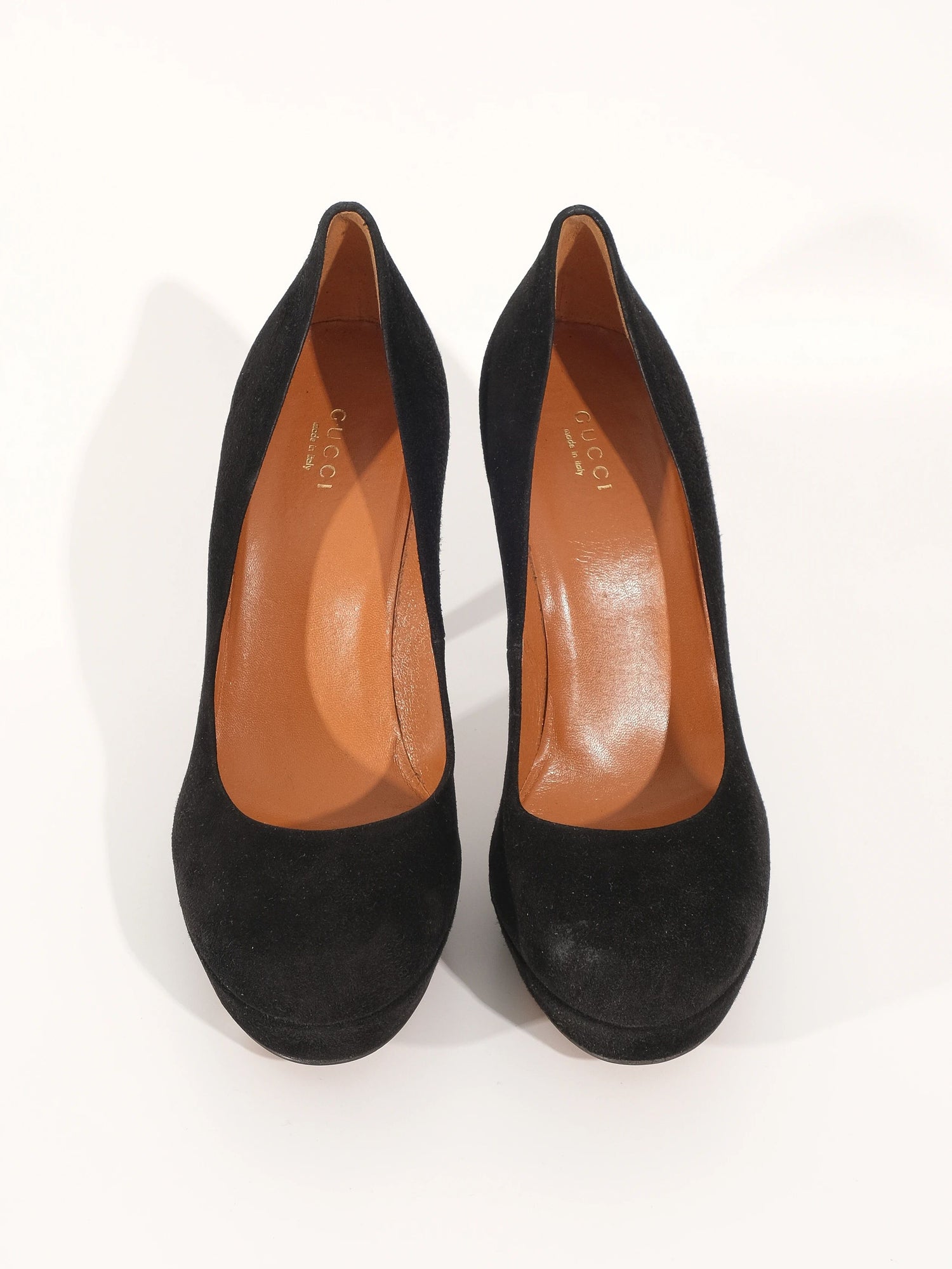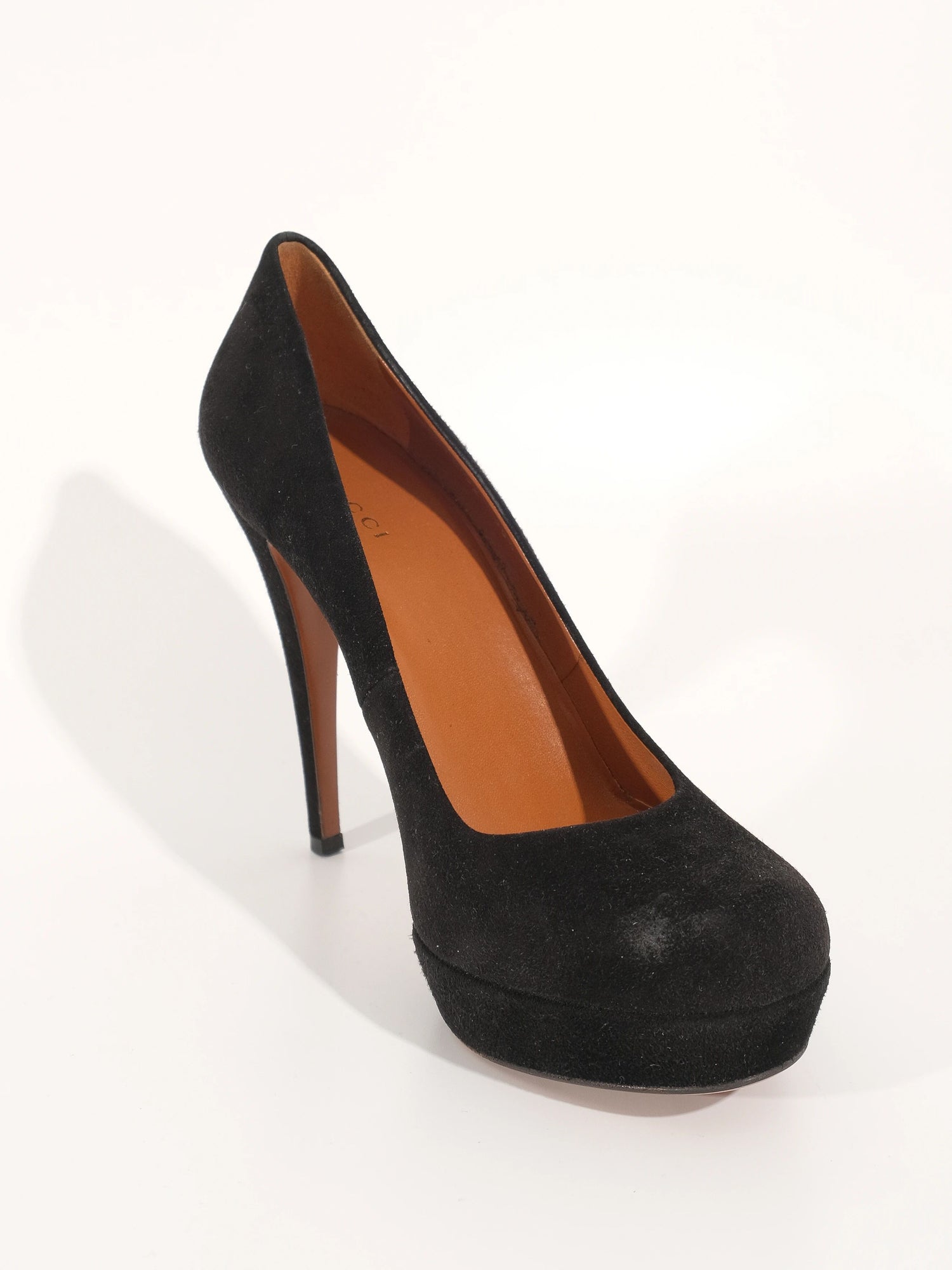 Excellent Gucci Black Genuine Suede High-Heeled Shoe Size 38.5