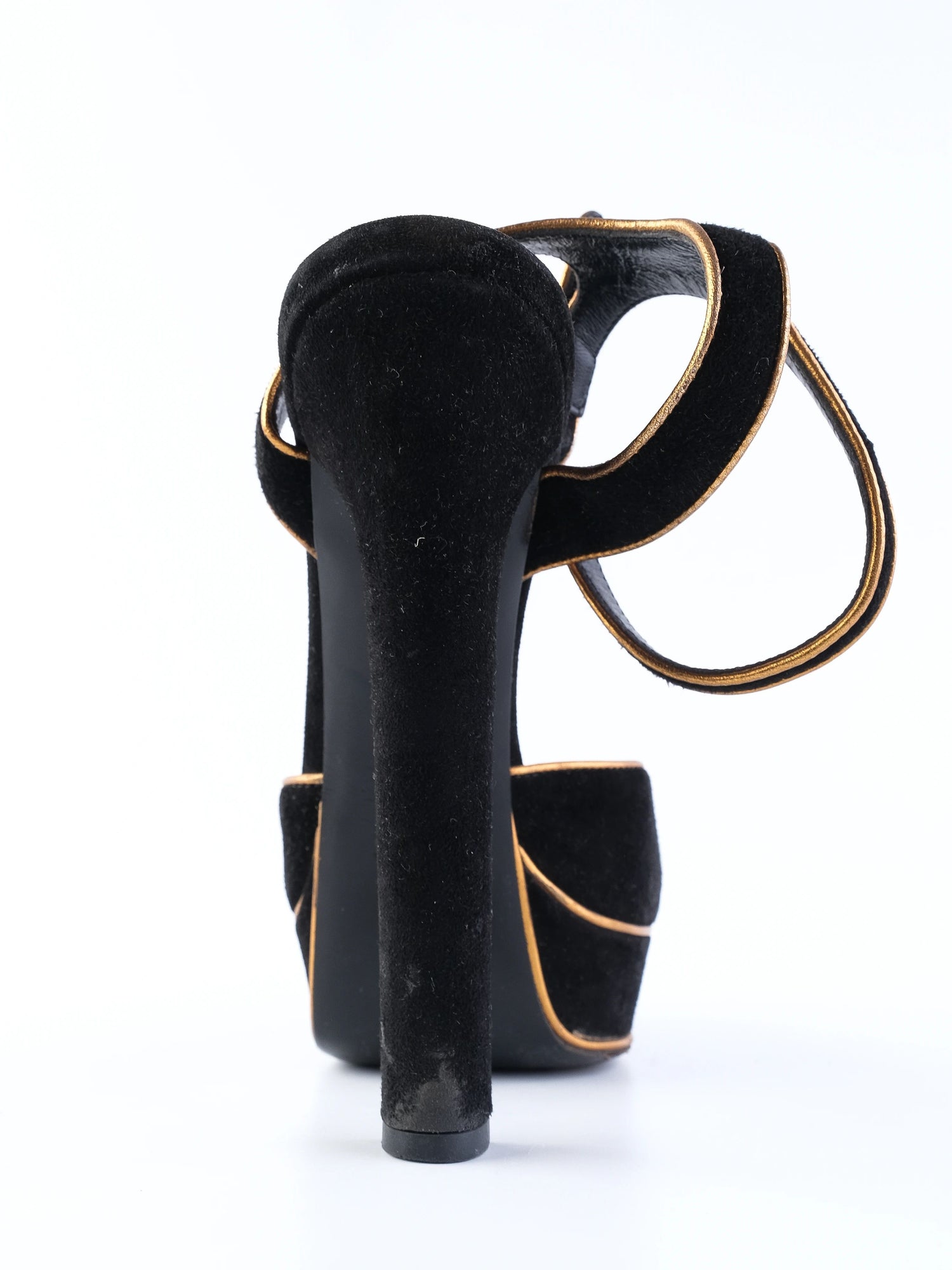 Excellent Gucci Black Genuine Suede Platform High-Heels Size 35