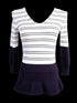 Excellent Karen Millen Women's Striped Sweater V-Neck Size 2. This stunning women's sweater features a fashionable V-neckline with a dynamic striped pattern in a combined color scheme of dark and white. The color combination includes a darker hue, likely navy blue or black, for the sleeves and lower portion, while the upper body showcases alternating stripes. The sweater is designed with a flared hem that adds a touch of elegance to your wardrobe. Condition: Excellent, showcasing minimal signs of wear, perfect for casual or semi-casual occasions. True to size for a flattering fit. Material: Crafted from a soft viscose blend, this sweater provides comfort and breathability. Care instructions: Machine wash or hand wash recommended for easy maintenance. Proudly smoke-free and pet-free environment. This versatile piece can transition seamlessly from day to night, making it a must-have addition to your collection. Please message me to confirm shipping timeframe. My full-time job involves traveling often, and shipping out may take longer than usual. Thanks for your interest.
