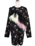 Excellent MSGM Black Floral Dress with Feather Embellishments Size XL