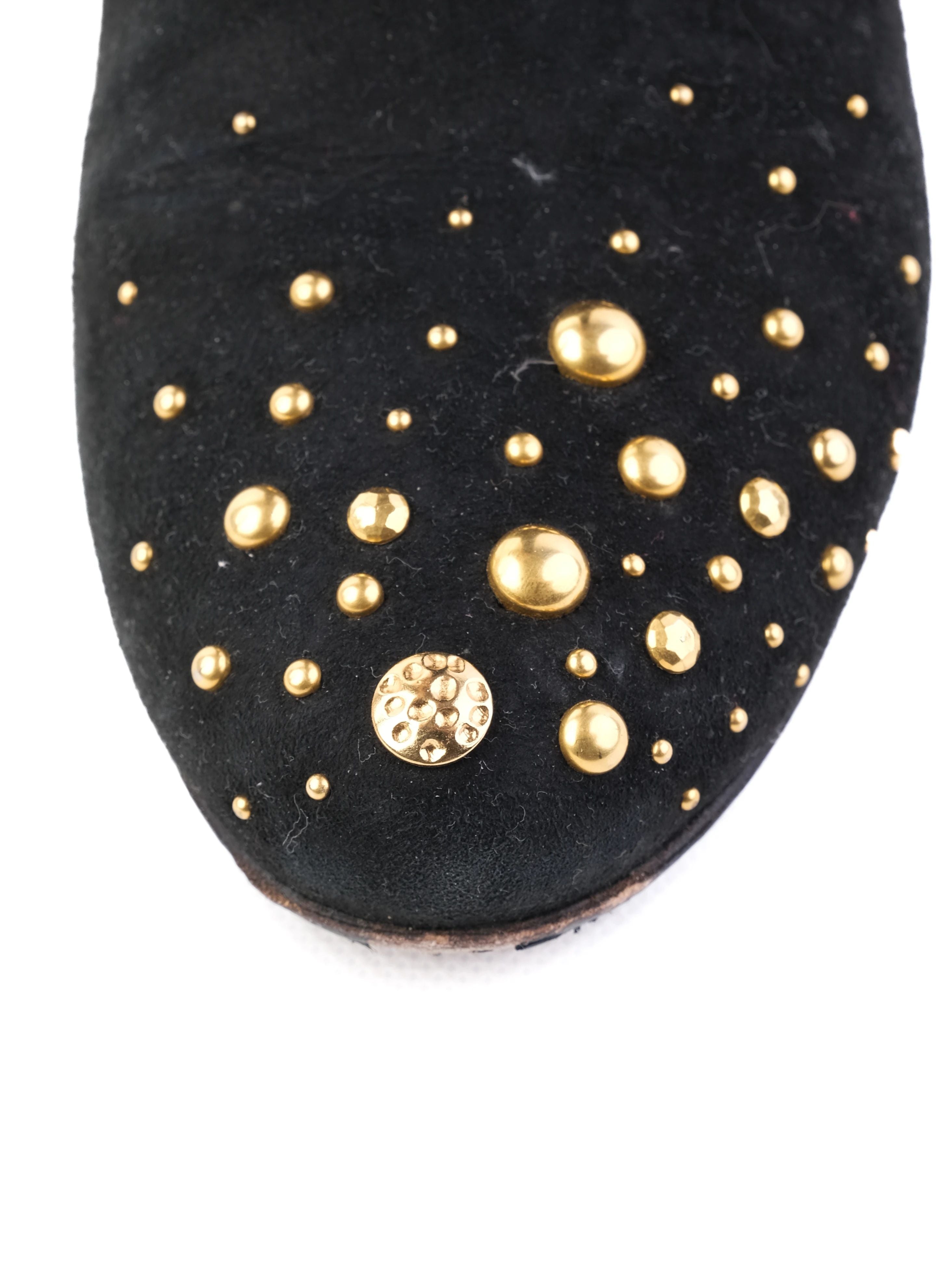 Excellent Prada Black Leather Thigh-High Boots Size 40 with Gold Accents Step into luxury with these stunning Prada thigh-high boots, crafted from premium leather in a sleek black color. Designed for women who appreciate bold fashion, these boots are a perfect blend of elegance and edge. The eye-catching gold decorative heel and the intricate textured design elevate the overall style, making these boots a standout piece in any wardrobe. Condition: Excellent, with no flaws and a perfect fit. These boots feature a striking design with gold studs and a large gold embellishment on the front, providing an alluring focal point. Upper Material: 100% Leather; Lining: Soft fabric for comfort. The unique heel height adds a touch of glamour, perfect for elevating any outfit from casual to chic. Care instructions: Spot clean only to maintain the luxurious appearance of these designer boots. Whether you're dressing for an evening event or wanting to make a statement during the day, these Prada thigh-high boots are the ultimate choice. Experience the unique craftsmanship and contemporary design that only Prada can deliver, making these boots a must-have addition to your footwear collection. Please message me to confirm shipping timeframe. My full-time job involves traveling often, and shipping out may take longer than usual. Thanks for your interest.