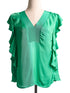Excellent Sandro Green Blouse V-Neck Ruffled Sleeves Size L Women