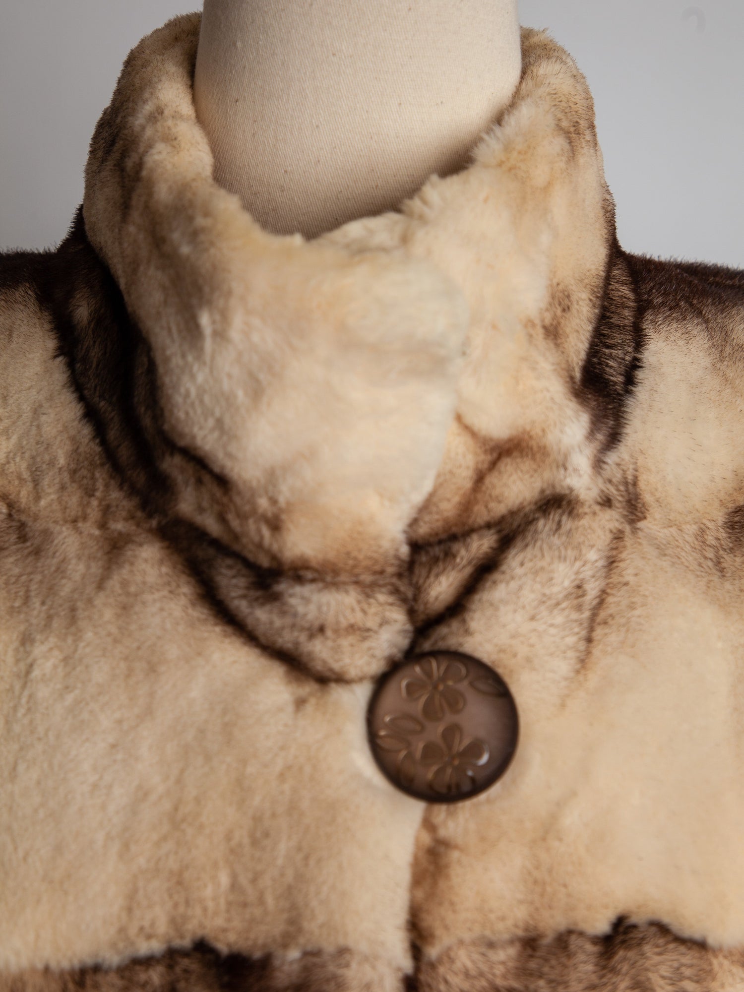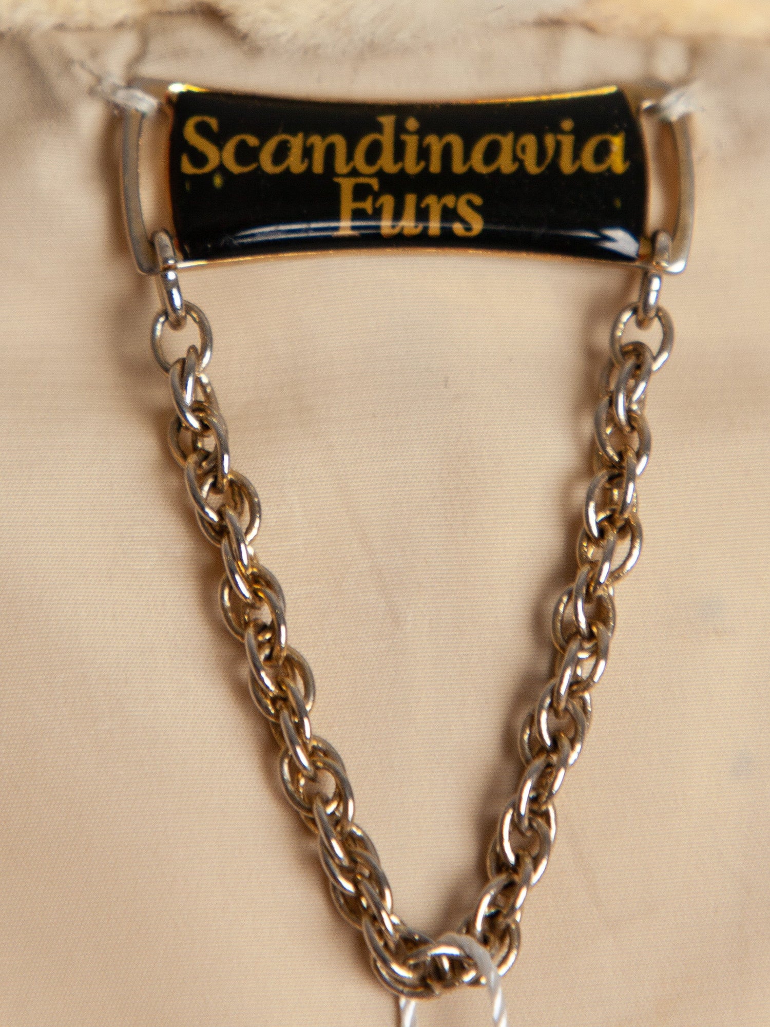 Excellent Scandinavia White Fur Coat with Horizontal Brown Stripes.