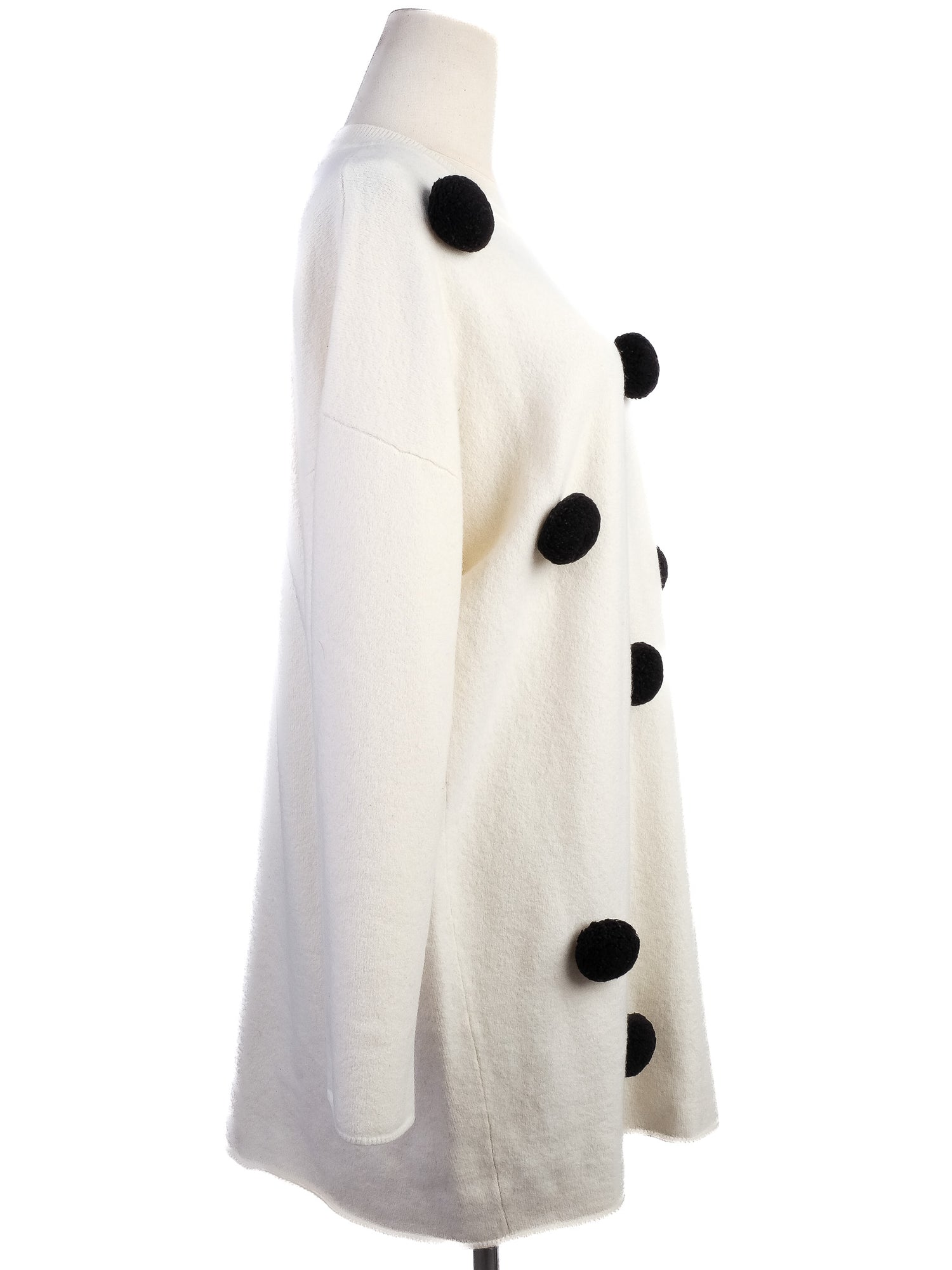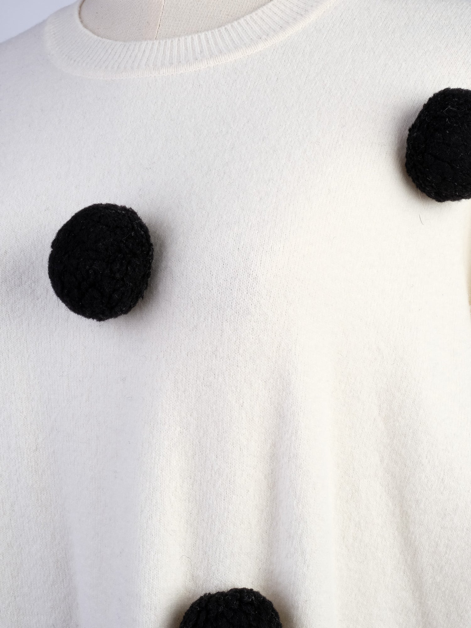 Excellent Sportmax White Wool Sweater Size S with Black Pom-Poms