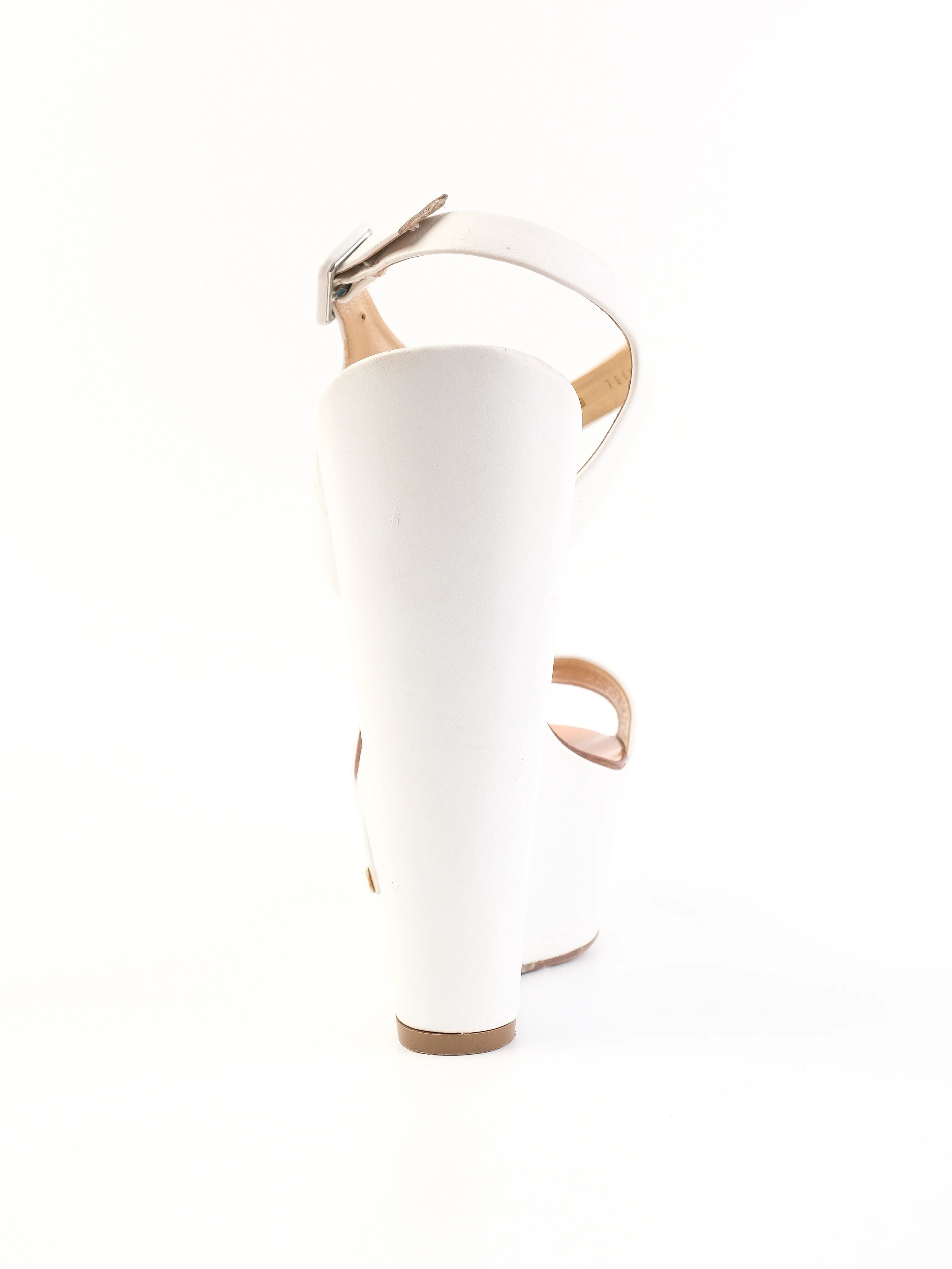 Excellent Vicini White Leather Platform Wedge Sandals Size 38