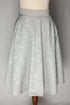 This stylish skirt features a light gray color in a soft, slightly textured polyester fabric. Designed with a fitted waist that gracefully flares out into an A-line silhouette, it embodies both elegance and comfort. The inclusion of practical side pockets adds functionality to its chic design, making it perfect for any occasion.