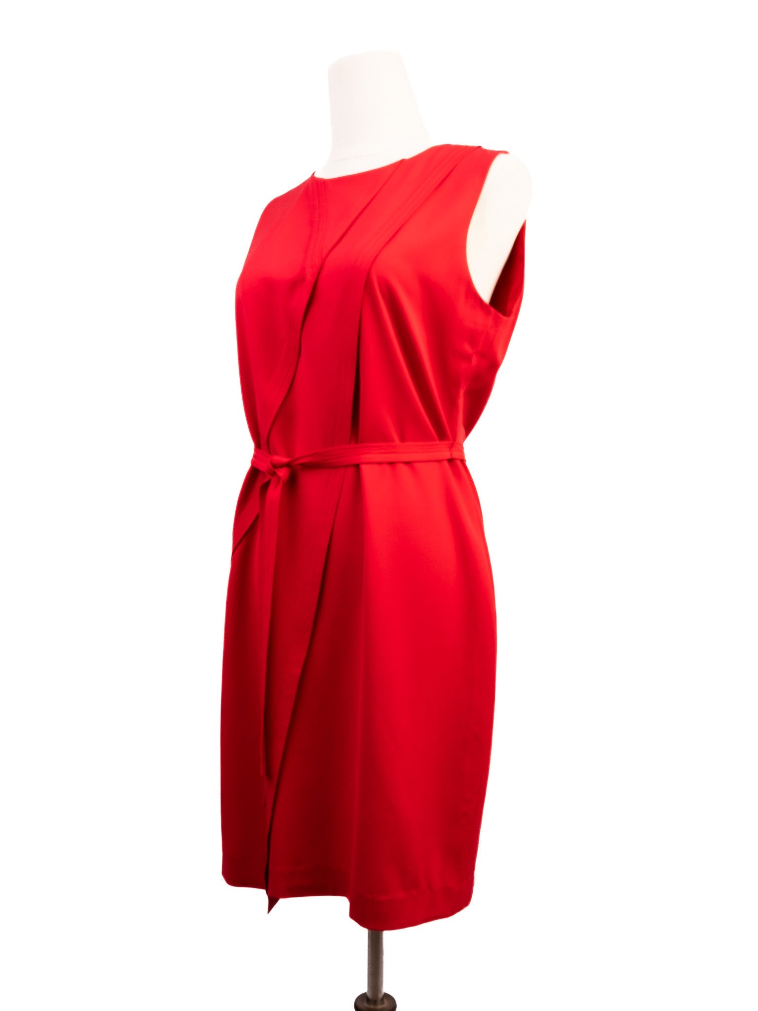 Good Elie Tahari Red Silk Sleeveless Dress with Waist Tie