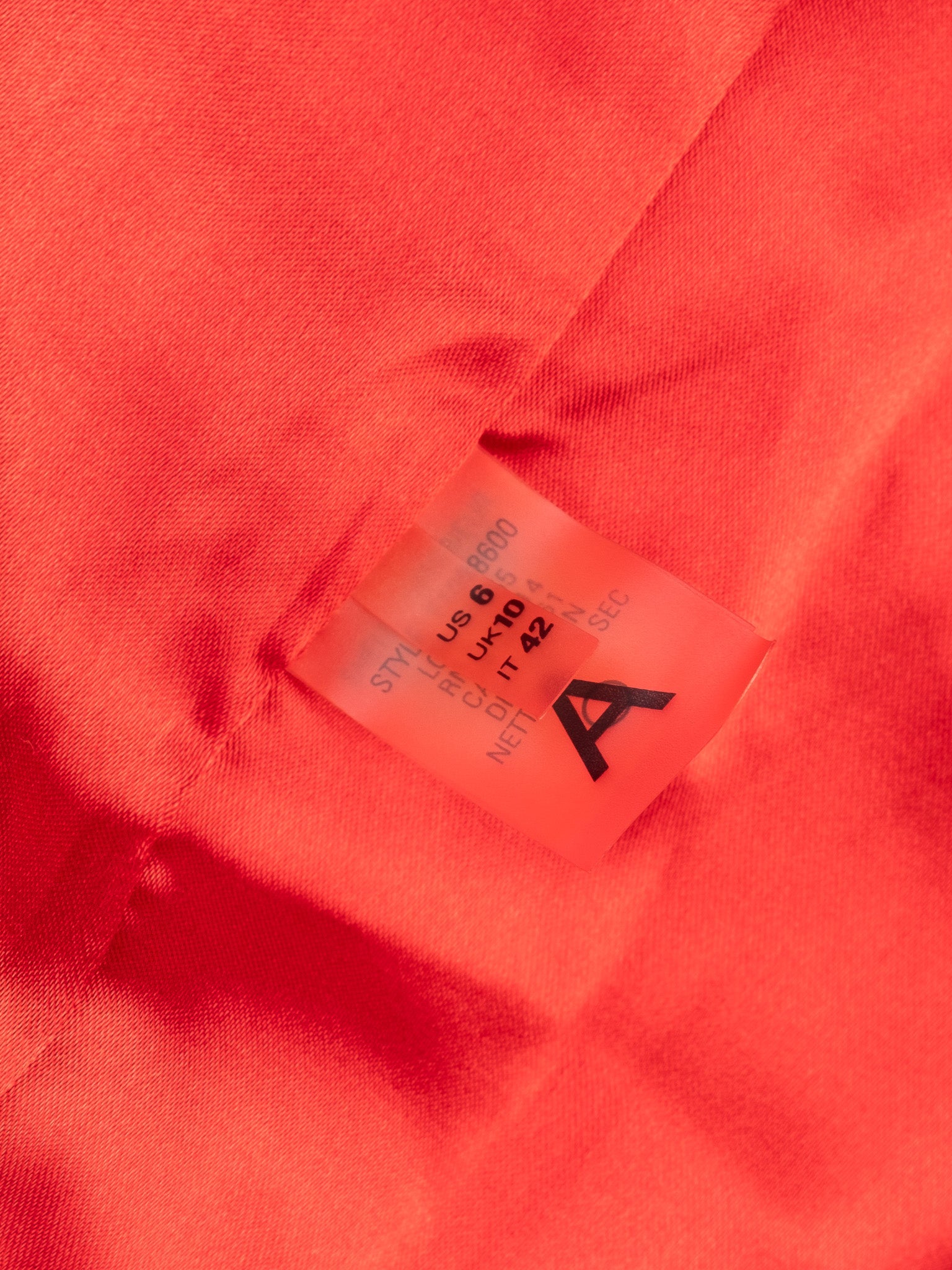 This stylish Elie Tahari dress is a must-have for women's fashion enthusiasts. Featuring a vibrant red color, this sleeveless dress is crafted from high-quality silk, providing a luxurious feel and drape. It includes a waist tie that enhances the silhouette, making it perfect for various occasions.