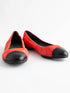 These elegant women's shoes feature a striking red suede upper with contrasting black tips, making them a fashionable choice for various occasions. Designed by the renowned brand Stuart Weitzman, these flats are known for their quality craftsmanship and stylish designs.