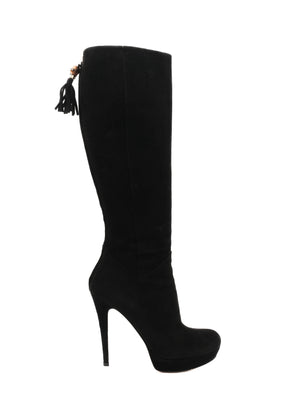 Gucci Black Genuine Suede Knee-High Stiletto Boots Size 36