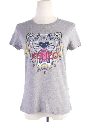 Kenzo Gray Cotton T-Shirt with Tiger Graphic Size XS Excellent