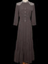 The dress showcases beautiful details, including buttons running down the front and stylish three-quarter sleeves. The tiered skirt adds movement, while the sheer shoulder panels create a delicate contrast. The back of the dress features a decorative design on the shoulders, enhancing its allure.