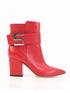 NEW Sergio Rossi Red Leather Ankle Boots Size 36.5 with Block Heel