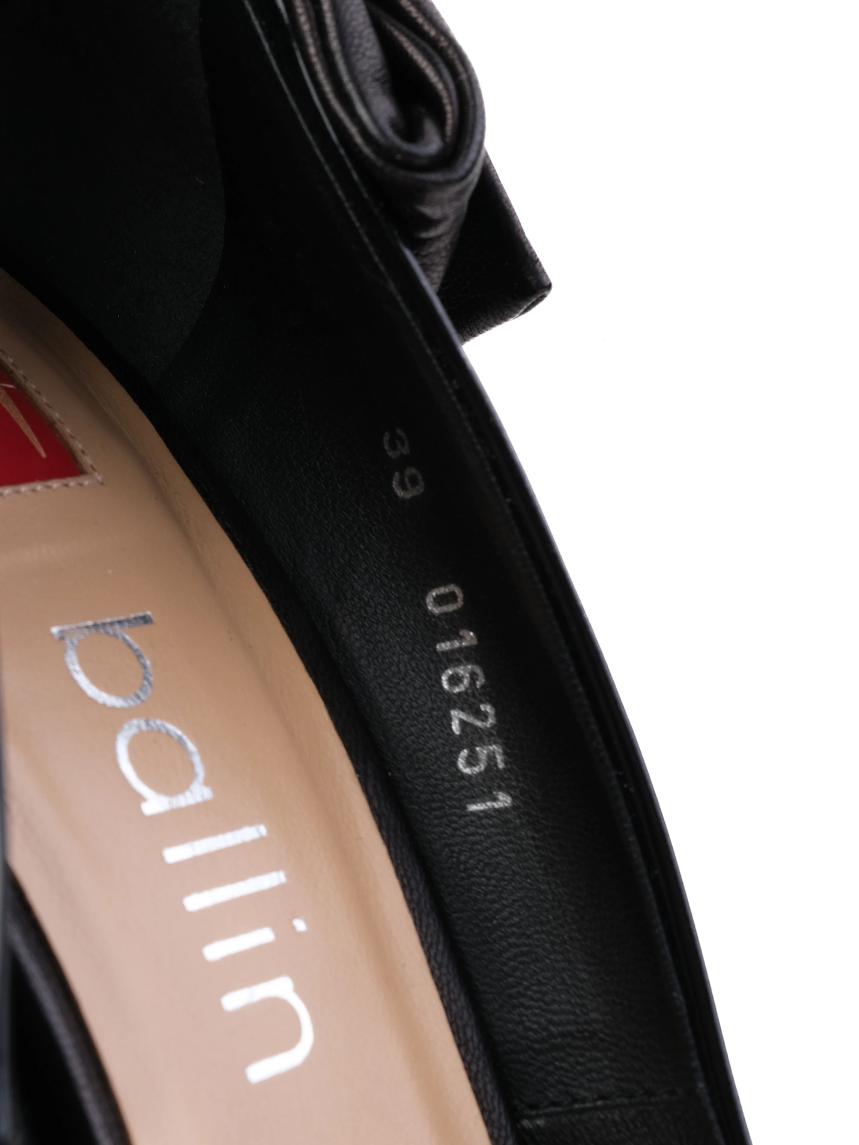 Perfect Ballin Black Leather High-Heeled Shoes Size 39 with Bow