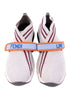 Perfect Fendi White Sneakers with Red Stripes Size 37 Women. These stylish sneakers are in pristine condition, showcasing a distinctive design featuring a strap across the front with 'FENDI' and 'LOVE' elegantly printed. Crafted from high-quality nylon, they offer a lightweight feel while being resilient for everyday wear. The knitted texture complements the shoe's sleek white color, enhanced by vibrant red stripes and a thick black and white sole with eye-catching orange accents. Size: 37, suitable for women's foot size. The closure type is a strap, providing a secure fit that combines functionality with fashion. These sneakers are excellent for casual outings or semi-casual events, perfectly pairing with various outfits. Care instructions: Spot clean with a damp cloth to maintain their pristine appearance. This pair is from a smoke-free and pet-free home, ensuring a quality experience for the new owner. Please message me to confirm shipping timeframe. My full-time job involves traveling often, and shipping out may take longer than usual. Thanks for your interest.