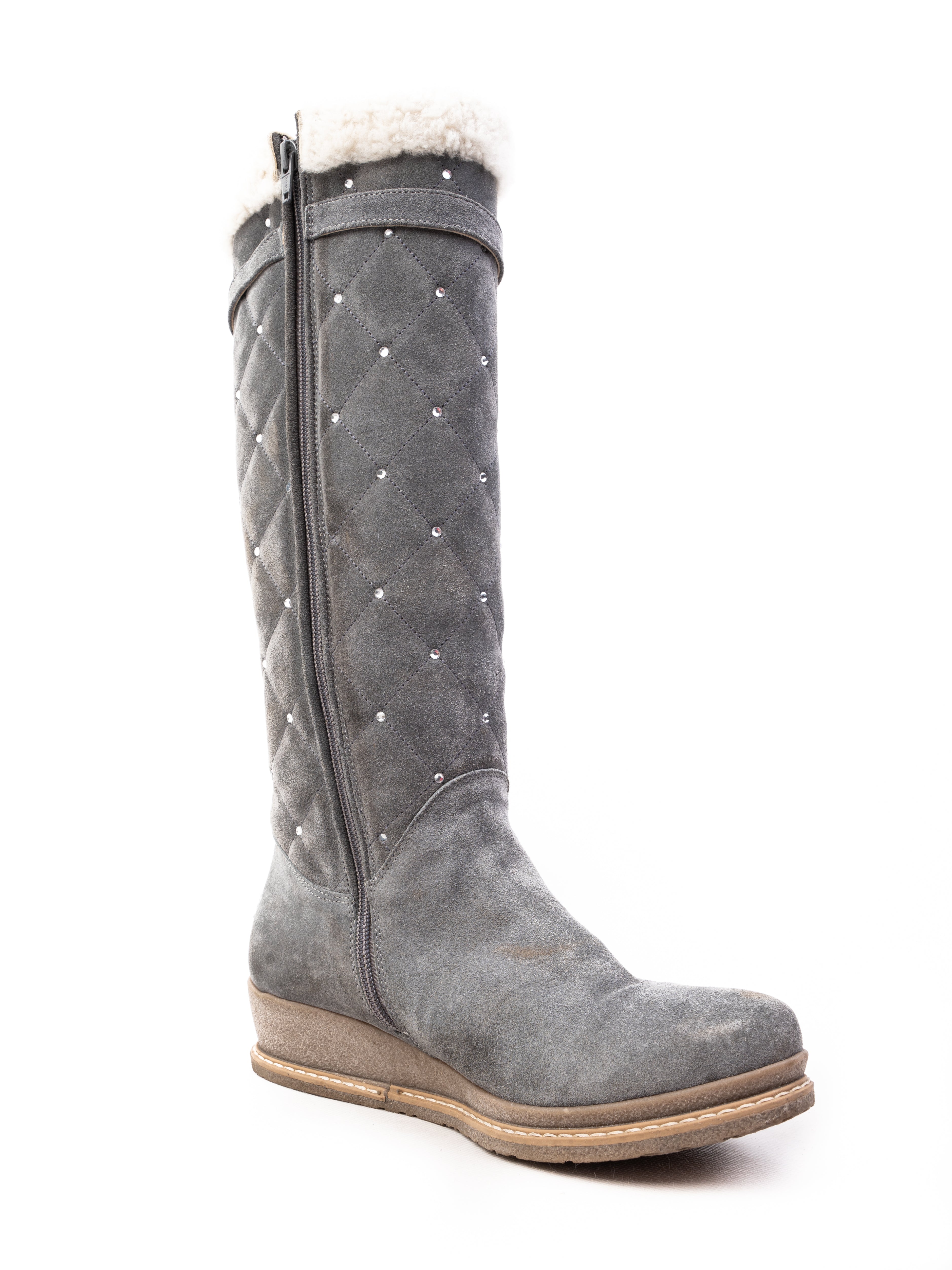These stunning boots exemplify high-end fashion and functionality. Crafted from quality genuine leather, the intricate quilted design is accentuated with decorative studs, giving these boots a chic edge. The stylish wedge heel offers both height and comfort, while the thick, textured sole ensures excellent traction for any surface.
