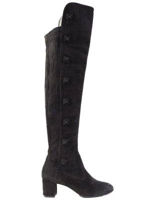 Valentino Black Leather Over-the-Knee Boots Size 37.5 Excellent Condition